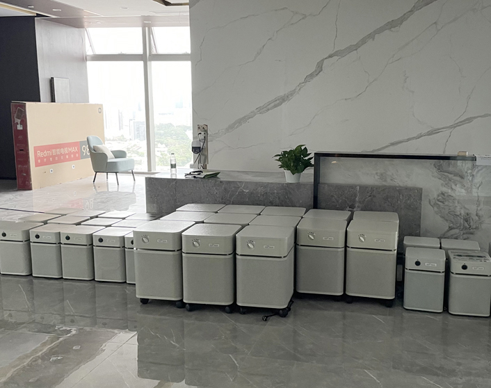 上海某證券公司辦公室裝修有異味,裝修有甲醛很正常,所以找到我們奧司汀空氣凈化器,租了50臺機器,其中有HM400有14臺,HM200有36臺;使用幾天后反饋除甲醛去異味效果非常好!