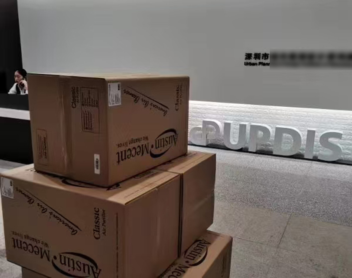 深圳市某某規劃設計院租用空氣凈化器除甲醛,在網上找到我們美國奧司汀空氣凈化器,因為要的比較急切,我們機器第二天就給送貨上門安裝,方便有效及時除甲醛,保障了員工的人身安全。