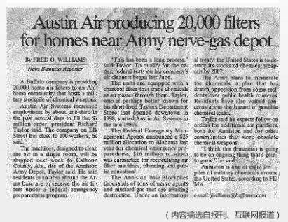 2000年,奧司汀系列產品通過了美國聯邦陸軍下屬的巴特爾生化實驗室的嚴格檢測,其產品的流速、流量設計、去除化學氣體、氣味和亞微米顆粒均達到實驗室的嚴苛標準。【注:巴特爾實驗室,是以科學、教育和慈善為目的設立的非營利性權威研究機構,在美國享有受免稅待遇??偛吭O在美國俄亥俄州哥倫布市的巴特爾紀念研究所(Battelle Memorial Institute)是世界上最大的獨立研究機構,在全球范圍內的130個城市共雇用了22000名科學家和研究人員?!?/p>